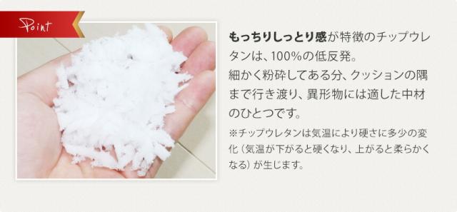 中材はモッチリ感触の低反発チップウレタンを100%使用。しっかりと入っているので重量感もあります。