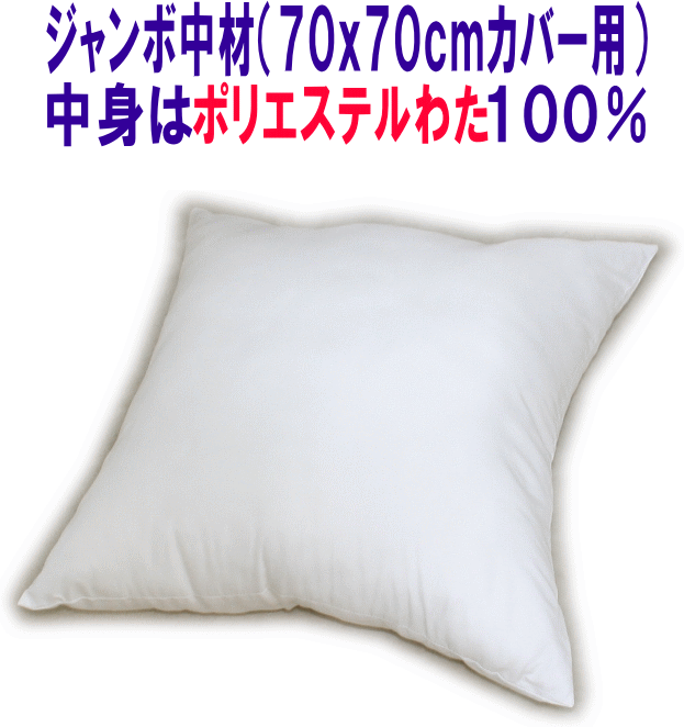 ジャンボ中材(70×70cmカバー用)中材 ポリエステルわた 発送当日わた入れ加工 国産 日本製 ヌードクッション インナークッション 中身 本体 70x70cm ジャンボクッション 背当て 大きい 特大 ふかふか カバーなし 中身だけ クッションカバー用 背もたれ 背当