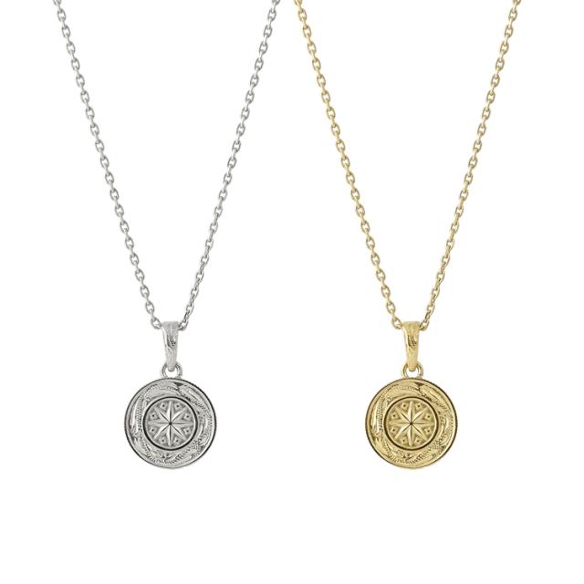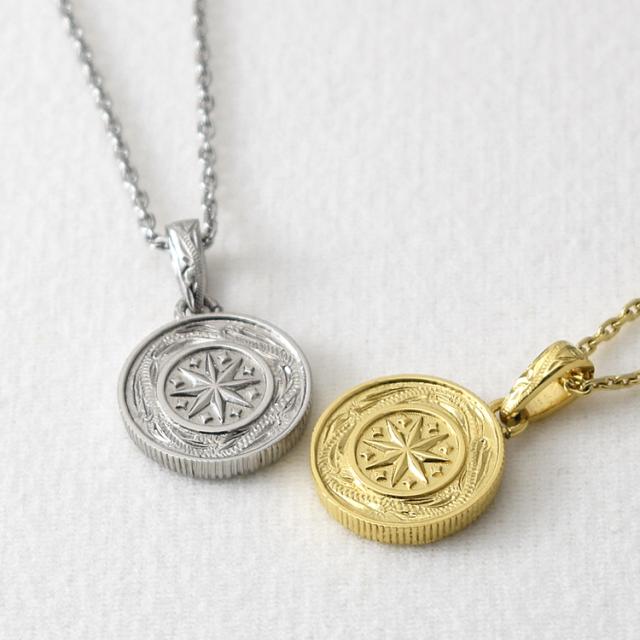 美しいハワイアン柄とスターモチーフのリバーシブルコインペアネックレス。