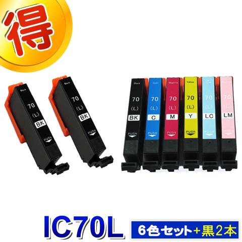 エプソン プリンターインク IC70L 6色セット+黒2本 IC6CL70L 互換インク ICBK70L ICC70L ICM70L ICY70L ICLC70L ICLM70L 対応機種 EP-306 EP-706A EP-775A EP-775AW EP-776A EP-805A EP-805AR EP-805AW EP-806A EP-806AW EP806AB EP806AR EP-905A EP-905F EP-906F EP-976A3