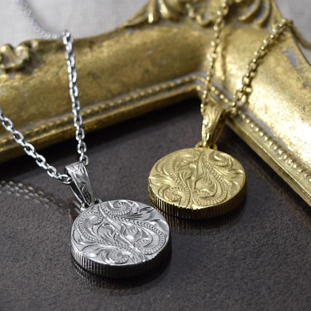 ハワイアンジュエリー ネックレス メンズ レディース 男女兼用 ステンレス つけっぱなし コイン リバーシブル あずきチェーン付き ハワイアン ペンダント サージカルステンレス 316L 金属アレルギー対応 スティールシルバーカラー gpss1399st