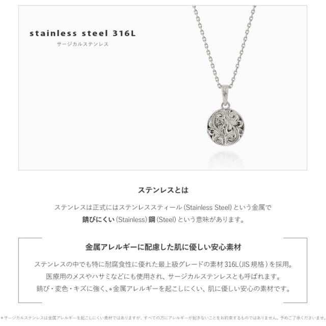 ※ステンレス316Lは金属アレルギーを起こしにくい素材ではありますが、すべての方にアレルギーが起きないことをお約束するものではありません。予めご了承ください。