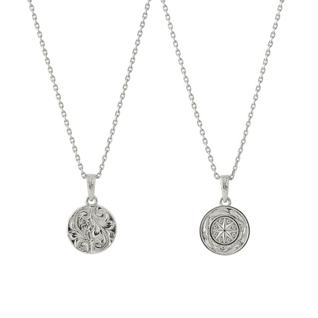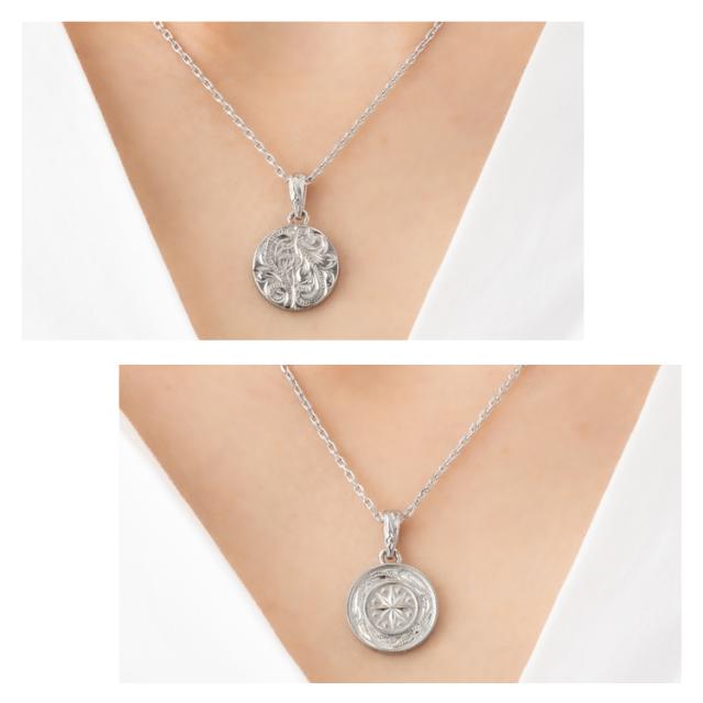 美しいハワイアン柄とスターモチーフのリバーシブルコインネックレス。