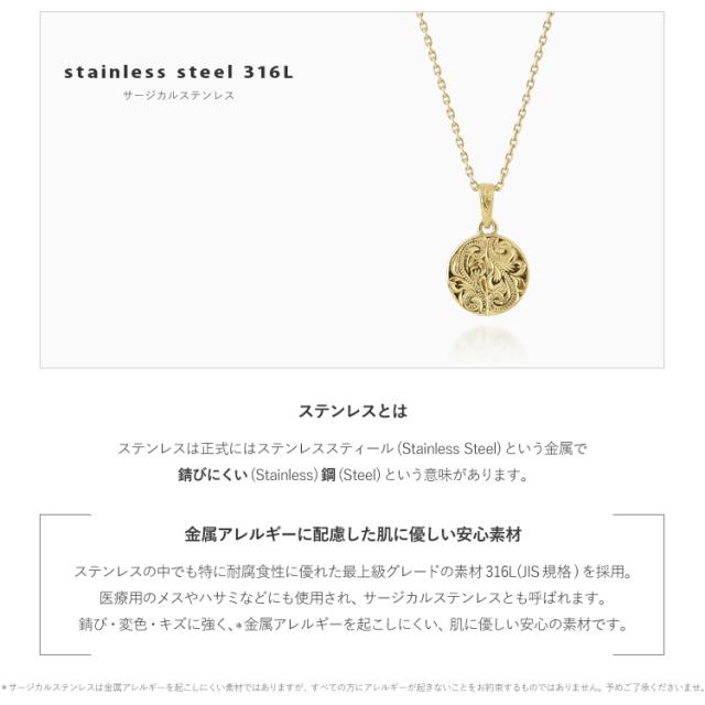 ※ステンレス316Lは金属アレルギーを起こしにくい素材ではありますが、すべての方にアレルギーが起きないことをお約束するものではありません。予めご了承ください。
