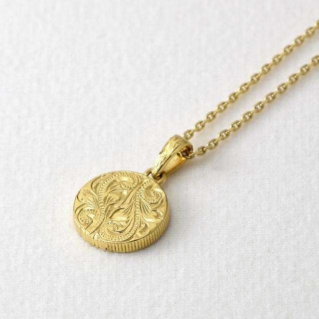 ハワイアンジュエリー ネックレス メンズ レディース 男女兼用 ステンレス つけっぱなし コイン リバーシブル あずきチェーン付き ハワイアン ペンダント サージカルステンレス 316L 金属アレルギー対応イエローゴールドカラー gpss1399yg