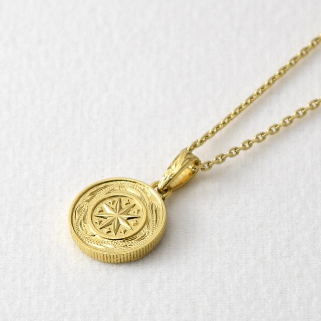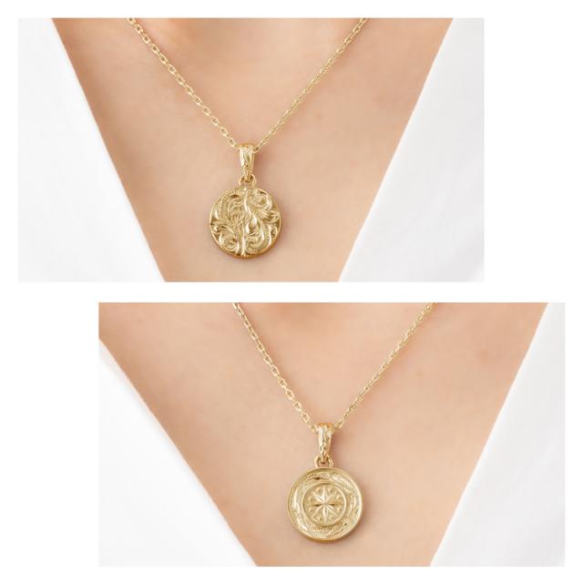 美しいハワイアン柄とスターモチーフのリバーシブルコインネックレス。