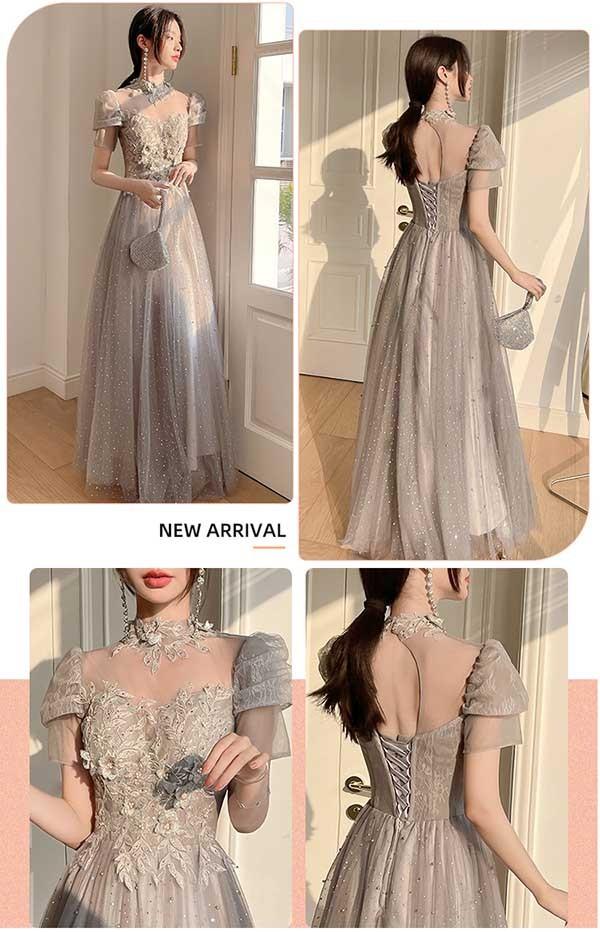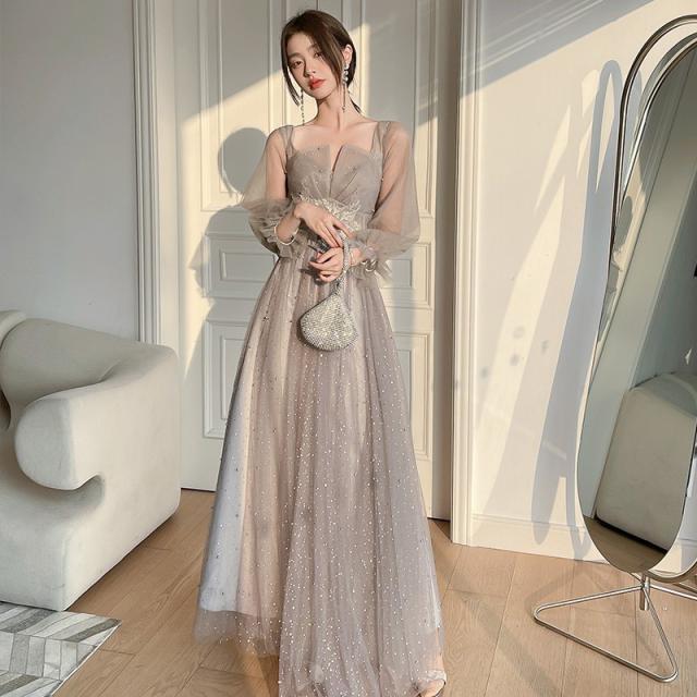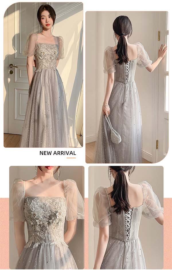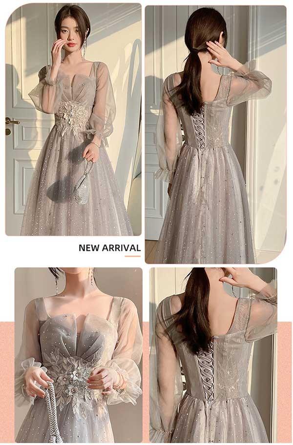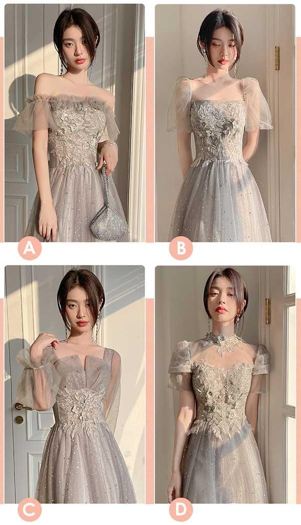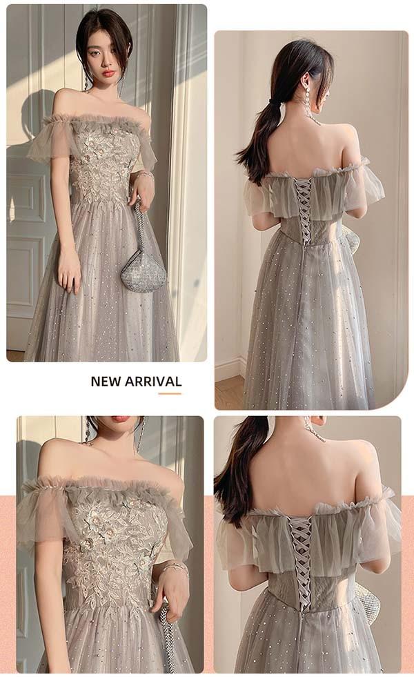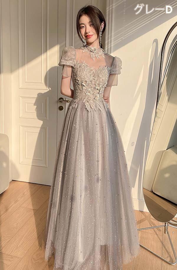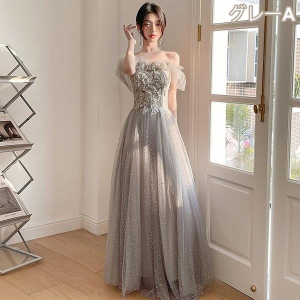 ロングドレス ミモレ丈ドレス ブライズメイドドレス 演奏会 大人 ピアノ 発表会 キラキラ ワンピース オフショルダー 袖付き ドレス 半袖 成人式 同窓会 演奏会ドレス Aライン 結婚式 ステージドレス 二次会 花嫁 母親 パーティードレス ウエディング ハワイ 結婚式 リゾートワンピ グレー da178n1n1la
