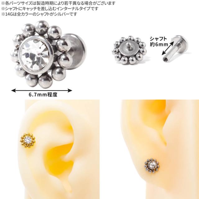 ドットフレームジュエル 14G 16G サージカルステンレス ジルコニア ジュエル シルバー ゴールド ヘリックス トラガス ラブレット 口ピアス 軟骨ピアス ボディピアス ドット ジュエル チャーム フラワー