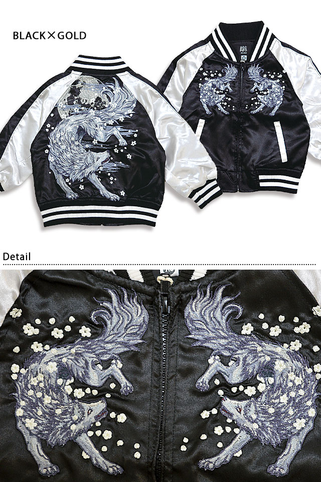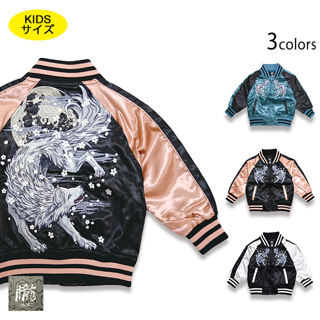 狼スカジャン 朧 キッズ 9022894 和柄 和風 刺繍 子供服 オオカミ 桜