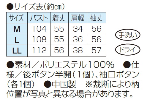●仕様/後ボタン半開(1個)、袖口ボタン(各1個)