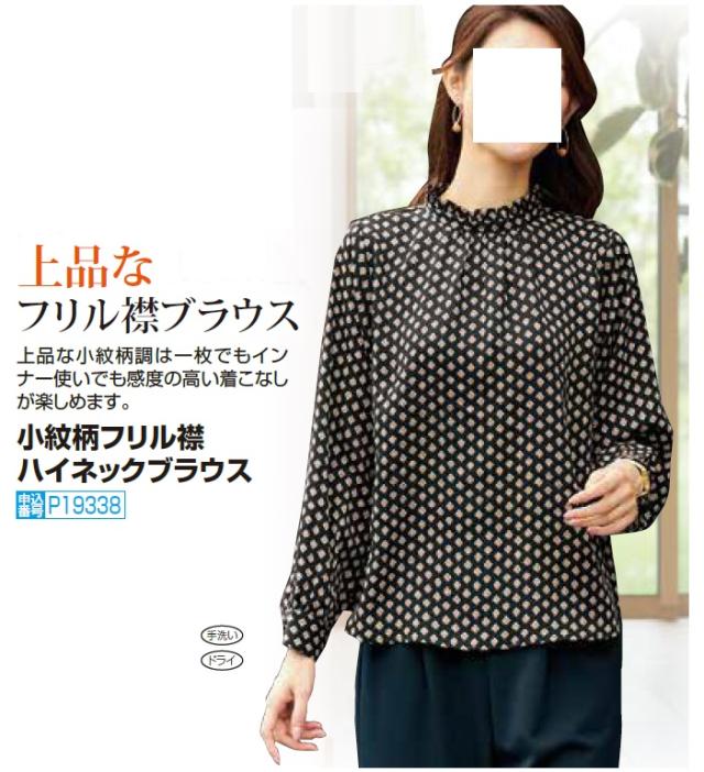 ブラウス 小紋柄フリル襟ハイネックブラウス ブラック系 トップス レディース 婦人服 ミセス シニア シンプル 和柄 和風 レトロ オシャレ シニアファッション 50代 60代 70代 80代 母の日 お母さん nss p19338