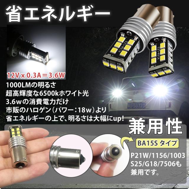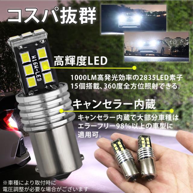 \超爆光1000LMバックランプ!!!/[高輝度 ] 最先端超高発光効率の2835LED素子15個搭載、360°全方位照射できて、 運転者にもっと安全で、ご愛車にもっと安全。[コスパ抜群] 超高輝度1000LM/個の明るさ、超高輝度なホワイトの光ではなく、 光は均一で、透亮で、鮮明で、より快適に見えます。 全方位LEDの設計、死角がなく、光の照射効率を最大限に発揮します。[導電性&耐久性抜群] CANBUS BA15Sソケットは全面的に導電でき、市販品の導電鉄線より、 ルーズや接触不良やすいの心配がなし。 航空アルミ材から製造されて、最大の放熱効率を達成し、ランプの寿命を延ばします。[無極性&取付簡単] 純正球とほぼ同じサイズなので、取付は簡単! 1:1サイズ、無極性ですので、純正球と簡単に交換でき、原箇所のまま差し込むだけで使用可能です。パッケージ内容:2個セットライト光:ホワイトサイズ:画像参照[注意事項]※モニターにより色合いが若干前後する場合がございます。※輸入品ですので多少の臭いやスレ傷、汚れはご了承ください。※取扱いサポートは受け付けておりません。※詳細は画像にてご確認ください