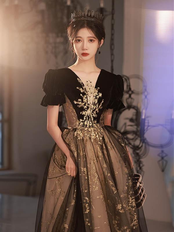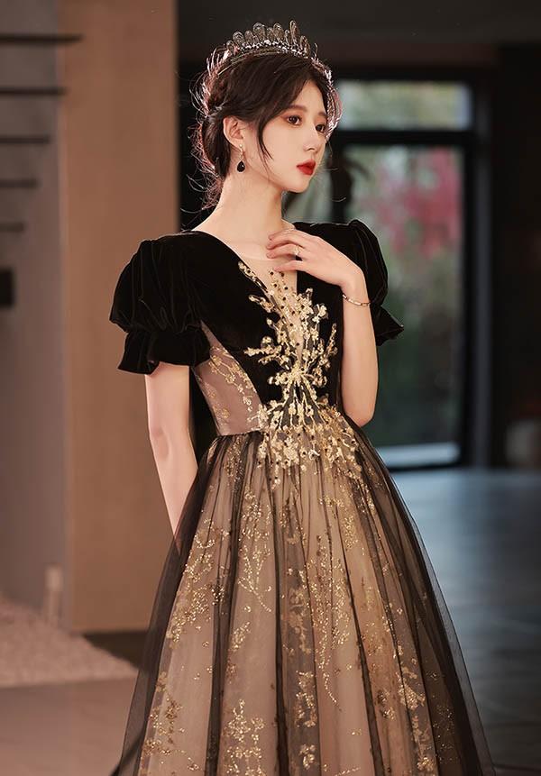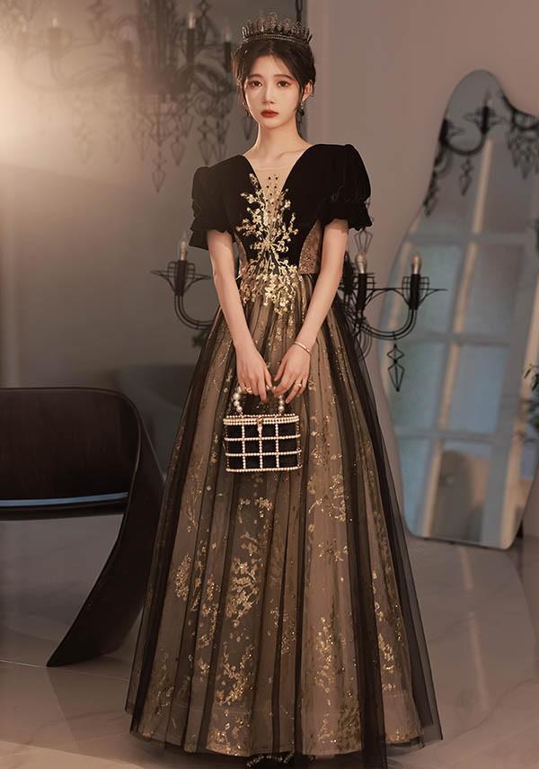ロングドレス 演奏会 大人 ピアノ 発表会 黒 ワンピース 袖付き ドレス 半袖 成人式 同窓会 演奏会ドレス Aライン 結婚式 ステージドレス 二次会 花嫁 母親 パーティードレス ウエディング ハワイ 結婚式 リゾートワンピ ブラック シャンパン da171n1n1la