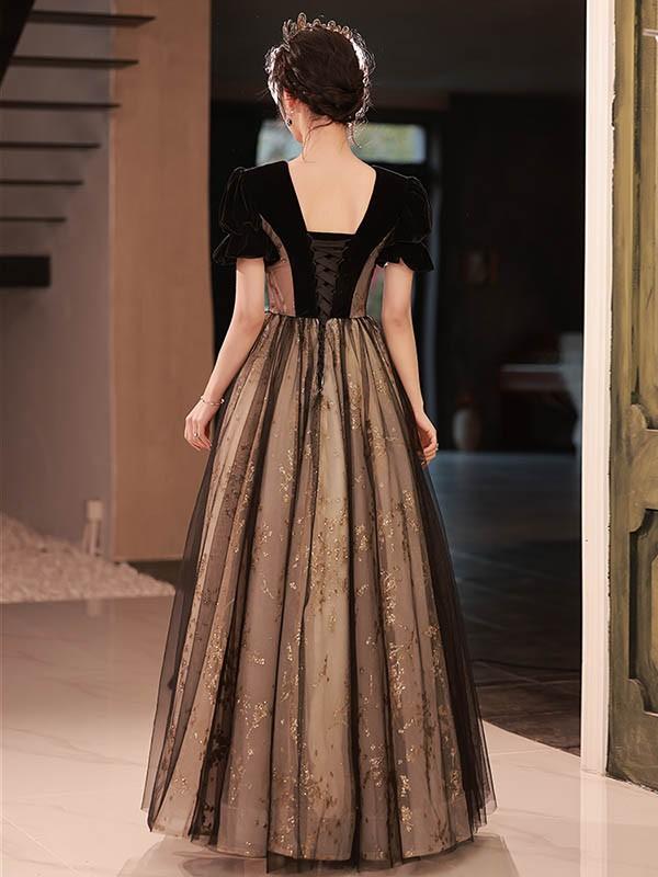 【レビュー投稿で+5%還元】ロングドレス 演奏会 大人 ピアノ 発表会 黒 ワンピース 袖付き ドレス 半袖 ドレス Aライン 結婚式 ステージドレス パーティードレス