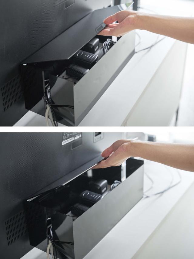 ケーブルタップをほこりから守りながら、テレビ裏スペースにスマートに収納できるケーブルボックスです。かさ張って散らかりがちなケーブルやケーブルタップ、充電器類をデッドスペースを活用しながらすっきりと収納することができます。