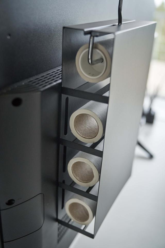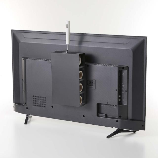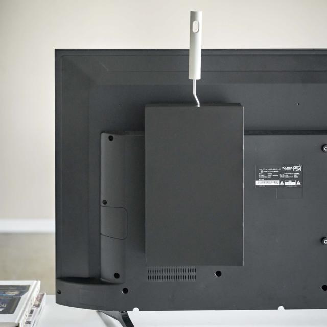 サッと使いたい掃除用品をテレビ裏に隠してスマートに収納