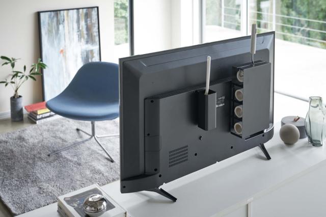 テレビの裏面にある、壁掛け金具などを取り付ける際に使うネジ穴に付属のネジを使って固定するだけなので、簡単に取り付けることができます。取り付け用の道具はすべて付属しているので、購入後すぐにご使用いただけます。
