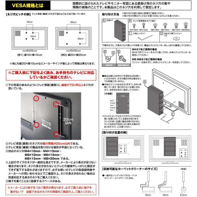 VESA規格のネジ穴に対応したテレビにお使いいただけます。