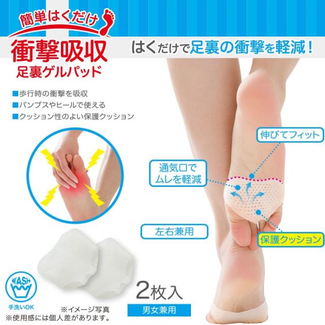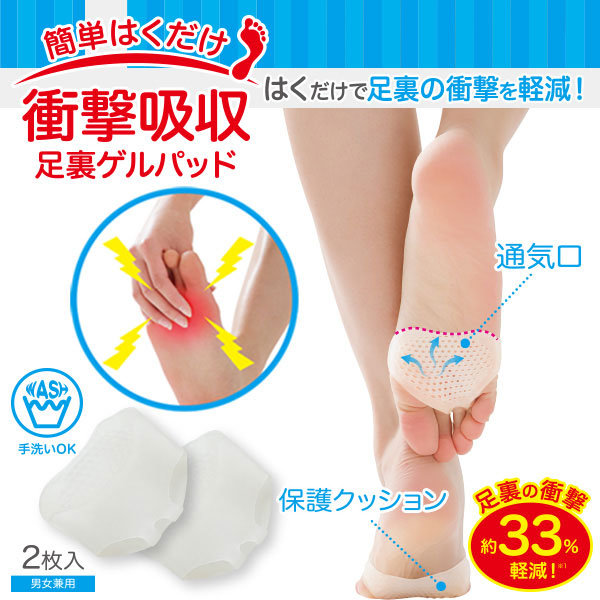 衝撃吸収足裏ゲルパッド 歩行 フットケア 足の裏 体圧分散 軽減 足疲れ 健康グッズ 脚の痛み 手洗いOK