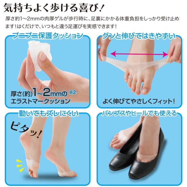 | 商品説明 | 歩たびに感じる足裏の衝撃を吸収。気持ちよく歩ける喜び! ・足裏部分に施した通気口でムレを軽減。 ・薄手なのでパンプスやヒールでも使える。 ・グンと伸びて履きやすく、足に優しくフィット。 |