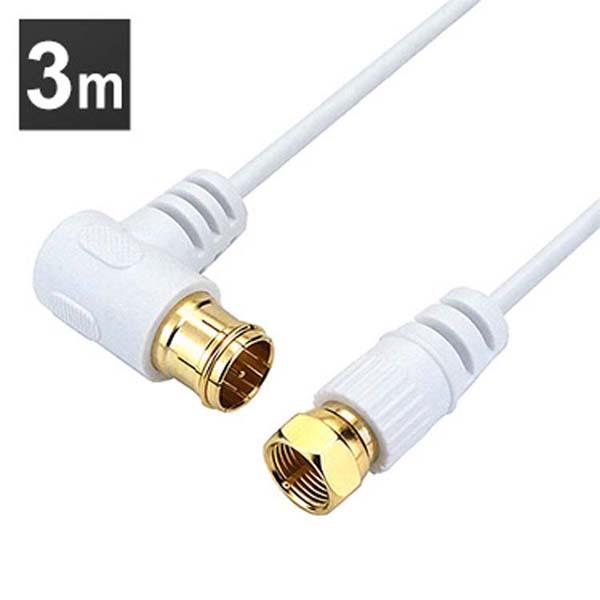 極細アンテナケーブル 3m L字差込式/ネジ式コネクタ 白 HAT30-245LSWH ホーリック (メール便) 4K 8K 対応 地デジ BS fl コード 同軸ケーブル テレビ接続ケーブル S-2.5C-FB 送料無料