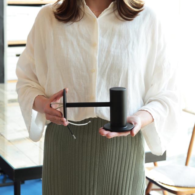 「koti サークル エントランスライト」はスマートでいてユーモラスな筒状フォルムが特徴的。小ぶりなので遠くから目立つアイテムではありませんが、玄関に近づいた時ふと目が留まる、アイコニックな存在感があります。