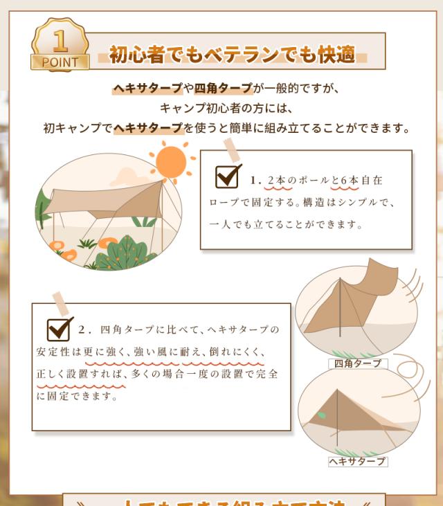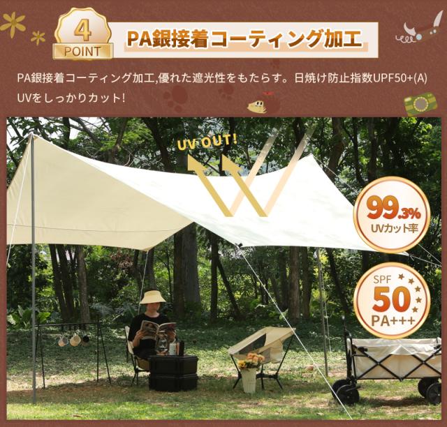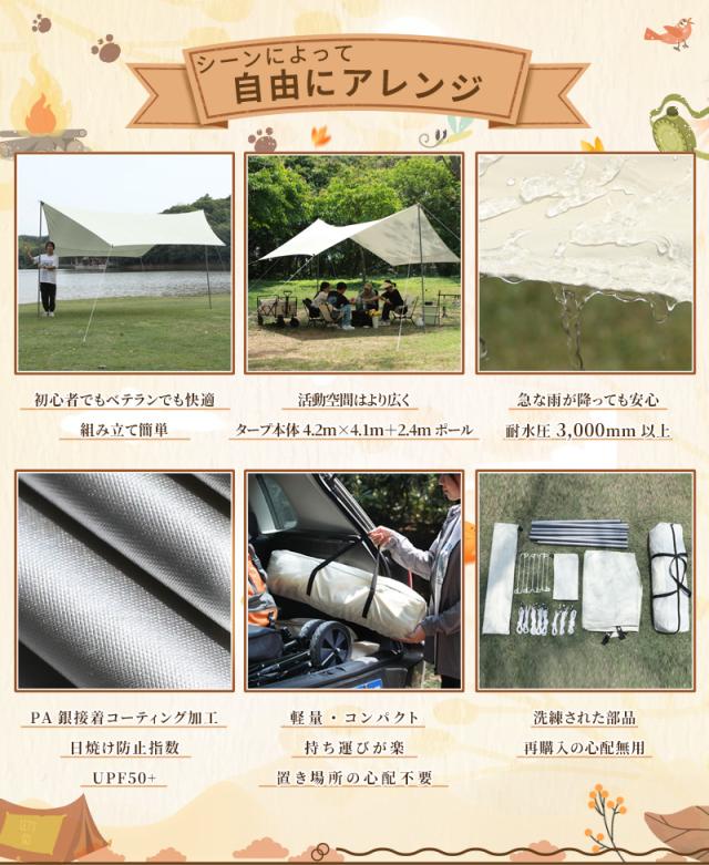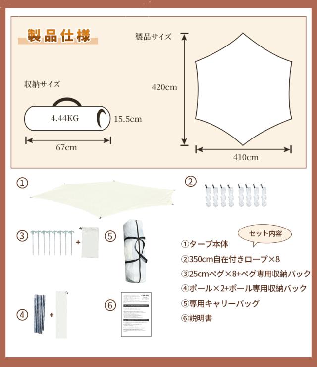 【送料無料】 1年保証 NIKSA ヘキサタープ 4.2m*4.1cm*2.4m セット ポール付き タープテント コンパクト 収納 ワンタッチタープテント ベージュ 簡単 大型 軽量 日よけ 日除け UVカット 防水 おしゃれ アウトドア レジャー キャンプ