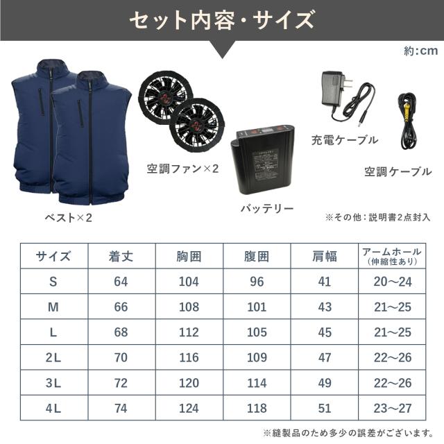 【ベスト2枚付】【2025年最新版】空調作業服 2枚セット 空調作業服 ファン付きベスト 空調ウェア 空調服ベスト 空調服バッテリーファンセット フルセット 袖なし ファン バッテリー 洗濯 プレゼント 人気 おすすめ 扇風機 付き ワーク 熱中症対策 送料無料