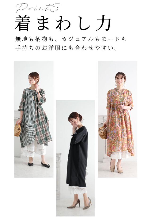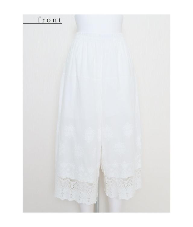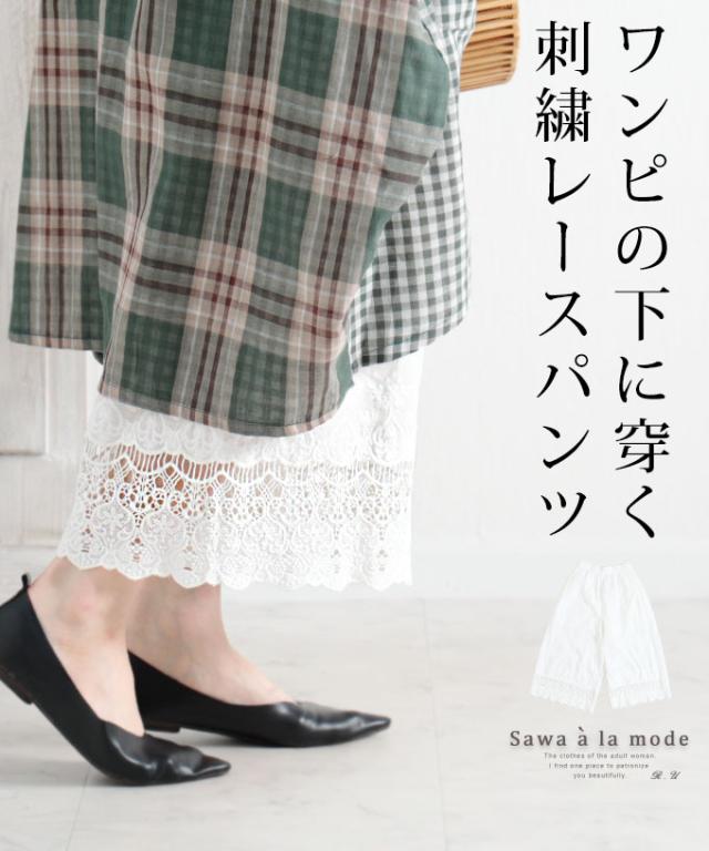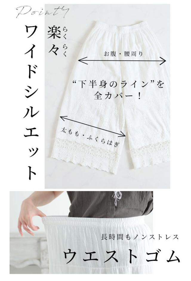 春新作 ワンピースの下に穿く花刺繍レースのワイドパンツ レディース ファッション ボトムス パンツ インナー 白 ホワイト 夏 大人可愛い 40代 レディースファッション 50代女性 ファッション 60代 ミセスファッション サワアラモード sawa a la mode otona mode-7858