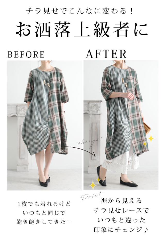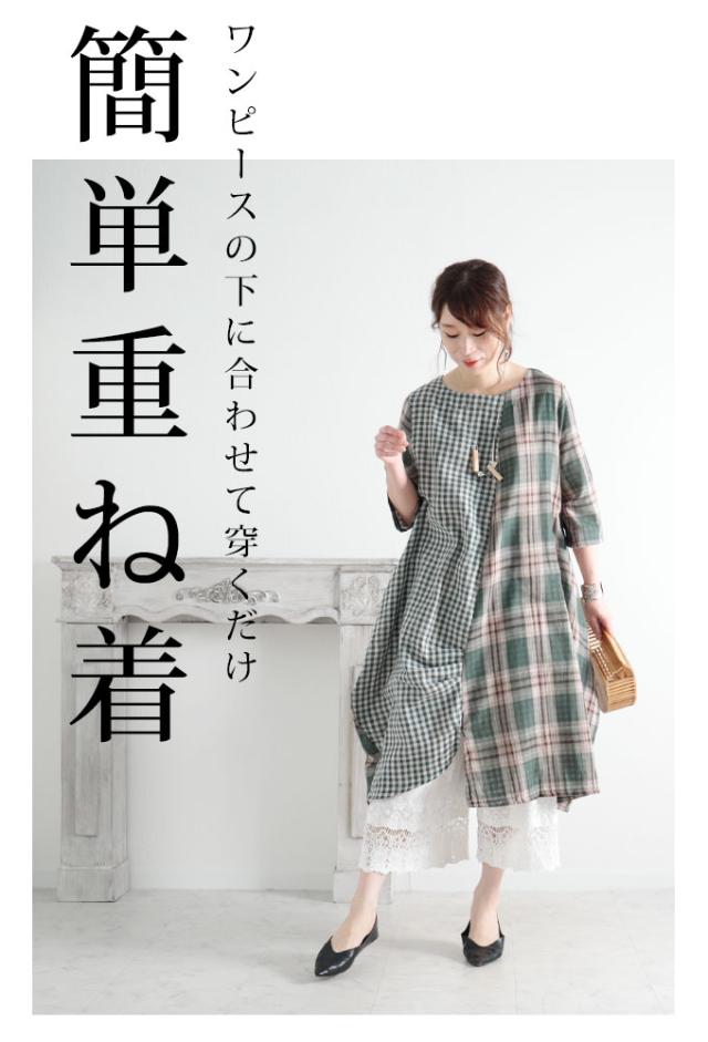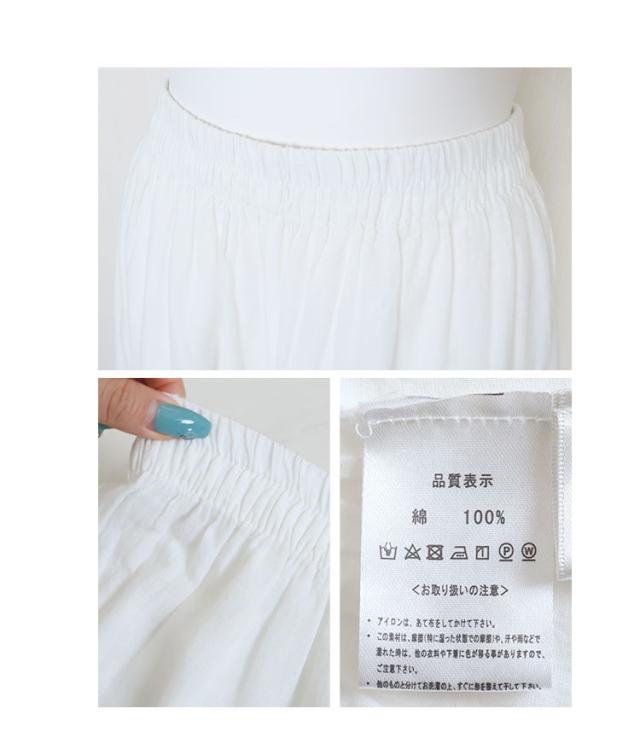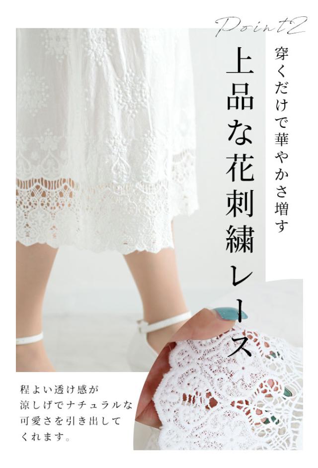 特徴: 刺繍 レース ウエストゴム ワイド レイヤード 綿 コットン
