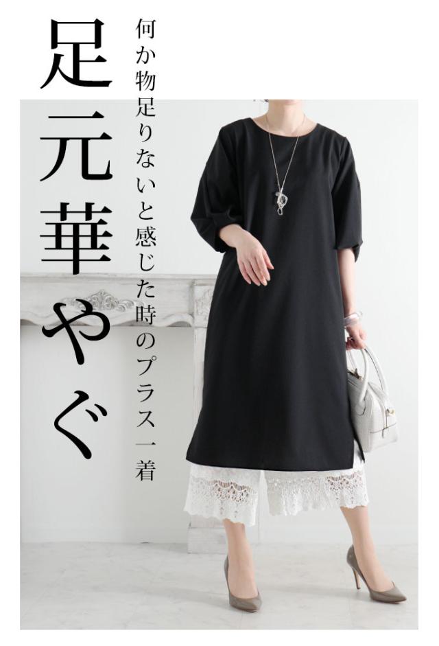 商品名: ワンピの下に穿く花刺繍レースワイドパンツ