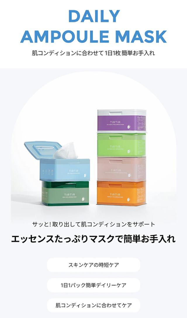 ティルティル デイリー アンプル マスク 30枚入り 3種 TIRTIR デイリーマスク シカマスク マスクパック