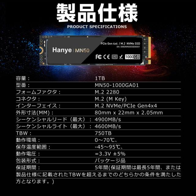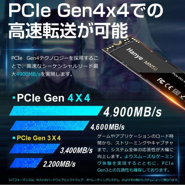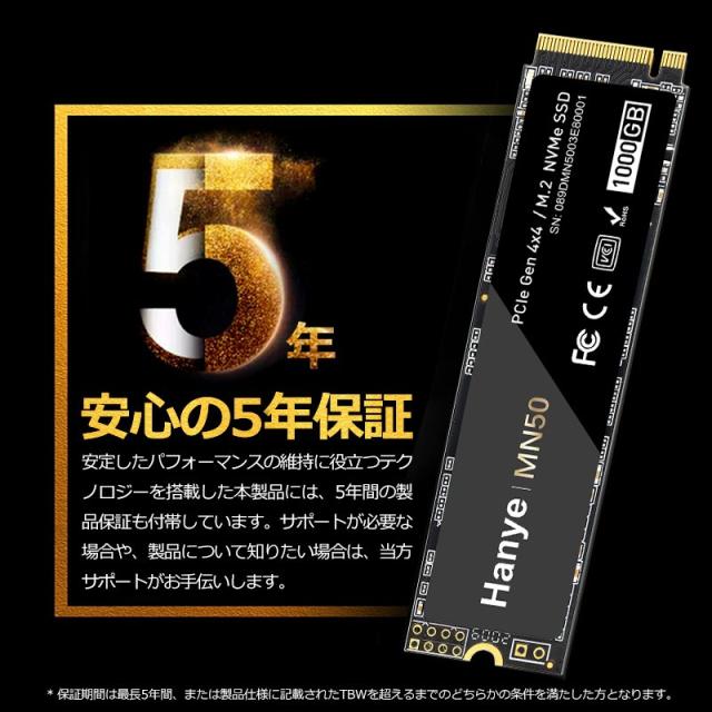 Hanye SSD 1TB PCIe Gen4x4 M.2 NVMe 2280 R:4900MB/s W:4600MB/s MN50 3D Nand TLC 正規代理店品 国内5年保証 ネコポス送料無料 ポイント消化