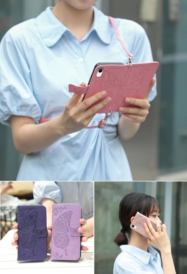 ケースの色合いに合わせたストラップ付属で、落下防止&荷物を減らせます。