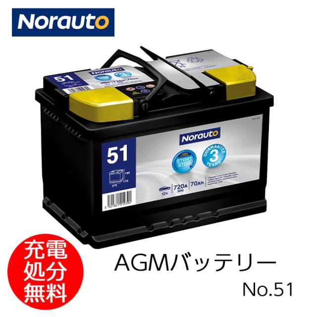 Norauto AGMバッテリー No.51 70Ah 720CCA H6/LN3 輸入車用バッテリー | VARTA E39 570901076 ボッシュ BLA-70-L3 に互換 カーバッテリー バッテリー本体 車 処分 アイドリングストップ車 長期保証 バッテリー交換