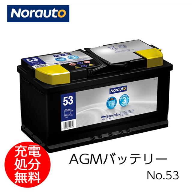 Norauto AGMバッテリー No.53 95Ah 810CCA H8/LN5 輸入車用バッテリー | VARTA G14 595901085 ボッシュ BLA-95-L5 に互換 カーバッテリー バッテリー本体 車 処分 アイドリングストップ車 長期保証 バッテリー交換