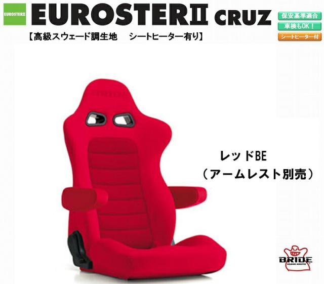 ブリッド BRIDE EUROSTER II CRUZ シートヒーター付 高級スウェード調生地 レッドBE E57BSN ユーロスター クルーズ リクライニングシート セミバケット | 車検OK 保安基準適合 シートレール 別売り 自動車パーツ セミバケ