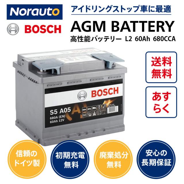 ボッシュ バッテリー ドイツ製 BOSCH AGM 規格:L2 サイズ:W242mm D175mm H190mm 60A 680CCA 欧州車用 高性能 バッテリー 0092S5A050 S5A05 アイドリングストップ 車 | カーバッテリー バッテリー本体 車のバッテリー VARTA LN2 BOSCH BLA-60-L2