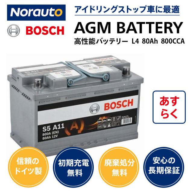 ドイツ製 ボッシュ AGMバッテリー 80A 800CCA 規格:L4 サイズ:W315mm D175mm H190mm 欧州車用 高性能スタート&ストップ S5A110 アイドリングストップ 車 | カーバッテリー 輸入車用 VARTA LN4 BOSCH BLA-80-L4 互換 0092S5A110