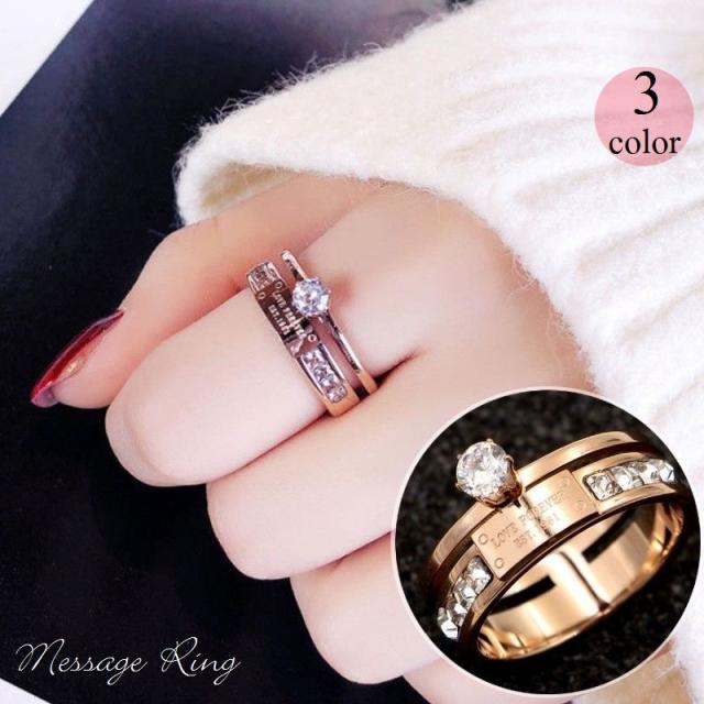 指輪 リング アクセサリー レディース 女性用 ラインストーン メッセージ入り シルバーカラー ゴールドカラー 上品 ゴージャス