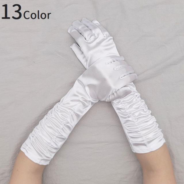 ウエディンググローブ レディース ミディアム丈 肘下丈 肘丈 サテン調 光沢感 無地 ドレス手袋 ブライダル小物 シンプル 上品