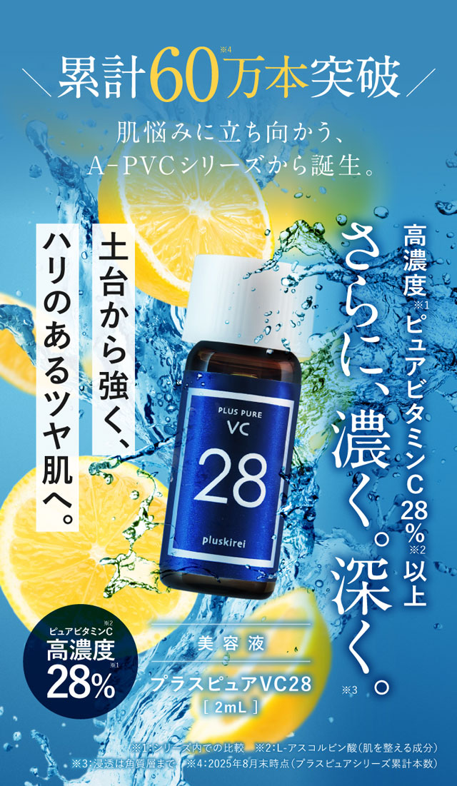 | 特徴 | ▼プラスモイストNA16 乾燥や肌荒れを防ぐナイアシンアミド(*1)16%配合の美容液。新たにグルタチオン(*1)、APPS(*1)、ペプチド(*3)の美容成分を贅沢に配合しました。さらっとしたテクスチャーで朝晩お使いいただけます。両親媒性のA-NAS設計で肌なじみがとても良く、角質層までスピード浸透。ビタミンC誘導体(VCエチル)(*1)、ヒアルロン酸(*2)が肌をにうるおいを与えしっとりとした使い心地です。肌の土台を整え、ゆらぎにくい肌へ導きます。 無着色/無香料/防腐剤フリー/アルコールフリー/鉱物油フリー/旧表示指定成分フリー/石油系界面活性剤フリー (*1)肌を整える成分 (*2)保湿成分 (*3)加水分解ダイズタンパク(肌を整える成分) ▼プラスピュアVC28 ピュアビタミンC(*1)28%以上を配合した、高濃度(*2)ビタミンC美容液。 ビタミンCをさらに濃く深く肌の奥(*3)まで到達させ、よりビタミンCをご実感いただける高濃度(*2)設計です。 これ1つで乾燥小じわやハリ不足など悩める肌に隙なく働きかけ、ハリキメをもたらします。 水にも油にもなじむ両親媒性の独自のA-PVC設計により、ピュアビタミンC(*1)が肌細胞をまっすぐ通りぬけ肌の奥(*3)までしっかりと浸透します。ビタミンC誘導体ではない、ピュアビタミンCがもたらす、翌朝の感動をご体感ください。 <フリー設計>無着色・合成香料フリー・エタノールフリー・高級アルコールフリー・無鉱物油・防腐剤フリー※パッチテスト済み(全ての人に刺激がないわけではありません。) ※(*1)L-アスコルビン酸:整肌成分 (*2)シリーズ内での比較 (*3)浸透は角質層まで |