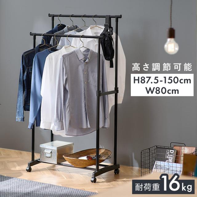 ハンガーラック スリム 頑丈 おしゃれ パイプハンガー アイリスオーヤマ 幅80 ダブル 2段 押し入れ 子供 省スペース 小さい ミニ 玄関 シングル ブラック 黒 コートラック 洋服掛け 洋服ラック コート掛け クローゼット 衣類 洋服 収納 PE-E280R 新生活 インテリア
