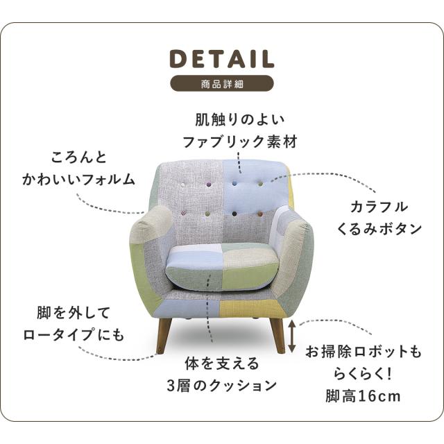 1人掛け ソファ パッチワーク パッチワークソファー カラフル コンパクト ソファー ひとり暮らし ヨランダ1P インテリア家具 おすすめ おしゃれ 北欧 big_ki プレゼント tm