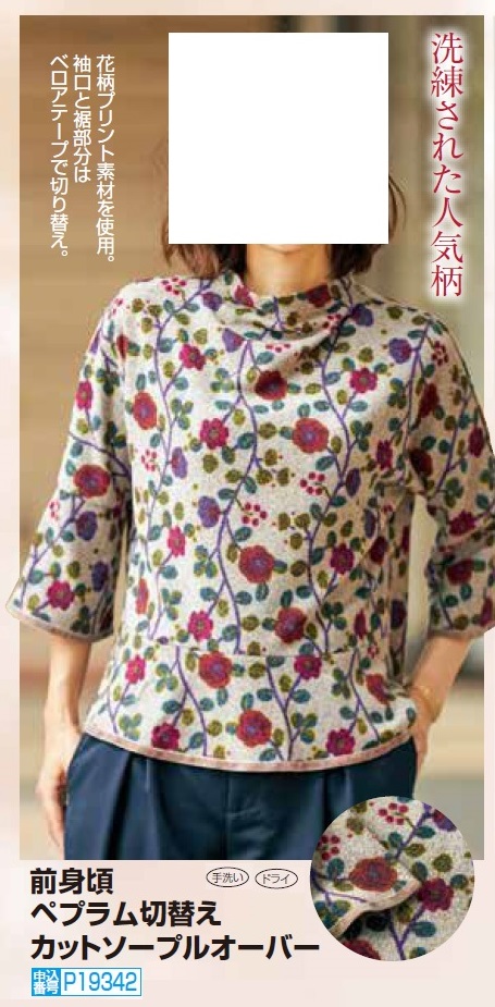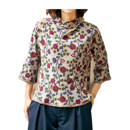 前身頃ペプラム切替えカットソープルオーバー ペプラム トップス 五分袖 カットソー レディース 婦人服 ミセス シニア ボタニカル フラワー柄 花柄 スタンドカラー シニアファッション 50代 60代 70代 80代 ギフト プレゼント 母の日 お母さん おしゃれ nss p19342