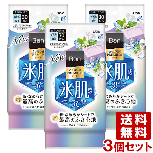 バン(Ban) さっぱり感 PREMIUMシート クールタイプ ナチュラルソープの香り 30枚×3個セット ボディシート 制汗シート 汗拭きシート ライオン LION 送料込