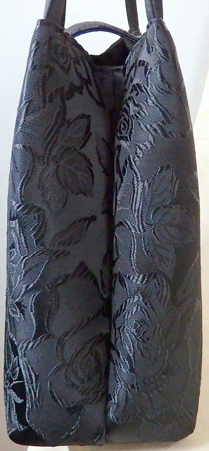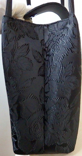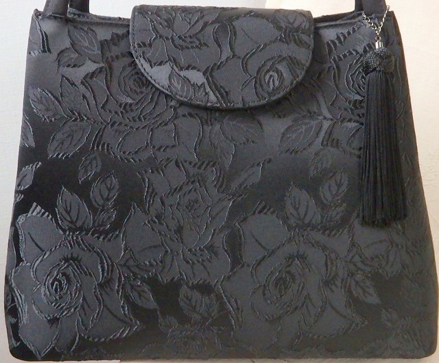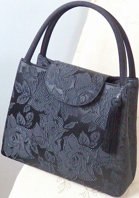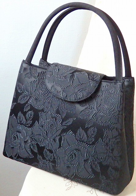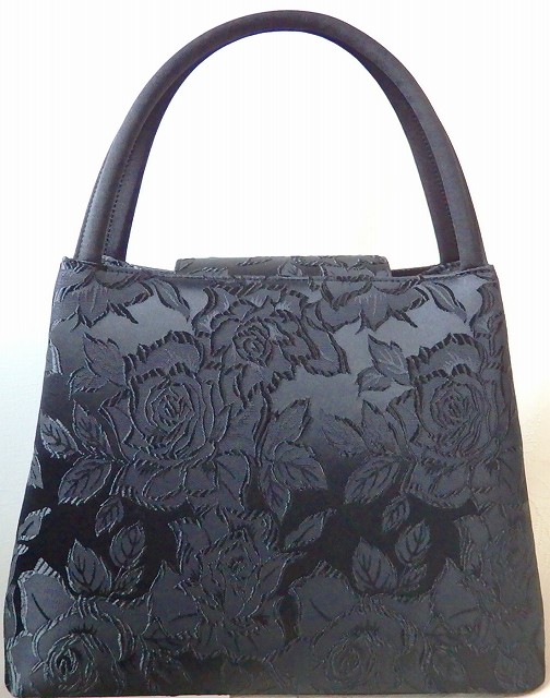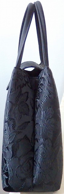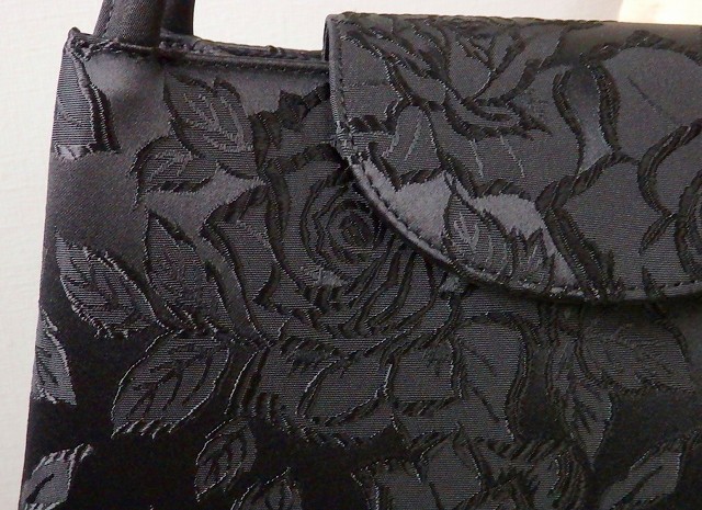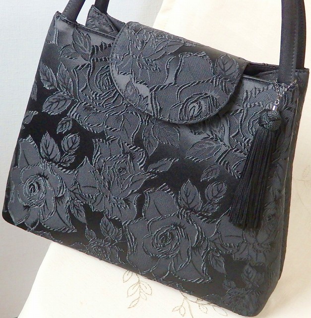 立体感のあるバラ柄ジャガード素材を全面に使用した喪以外でも様々なシーンで使用可能バッグ。