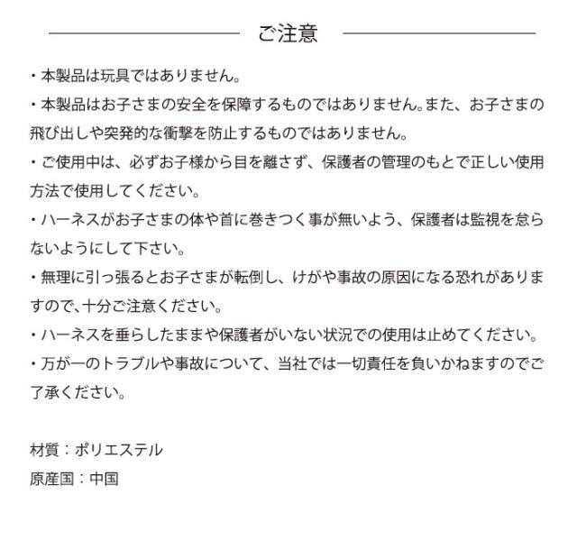 ・ハーネスを垂らしたままや保護者がいない状況での使用は止めてくださ