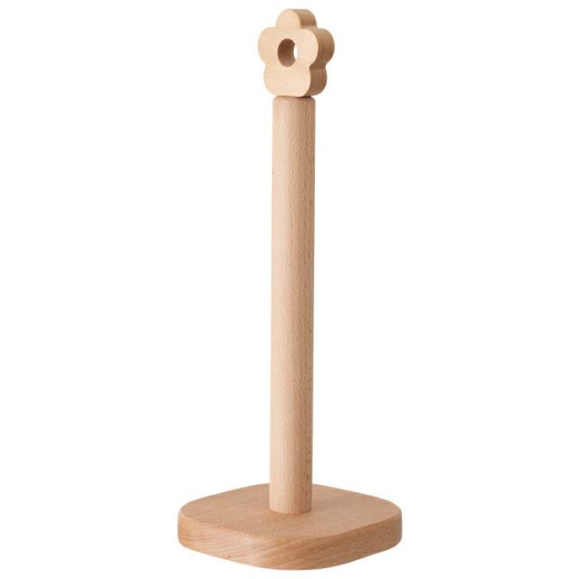 ナチュラル 木製 キッチン ロールホルダー キッチンペーパー キッチンタオル スタンド けやき 花