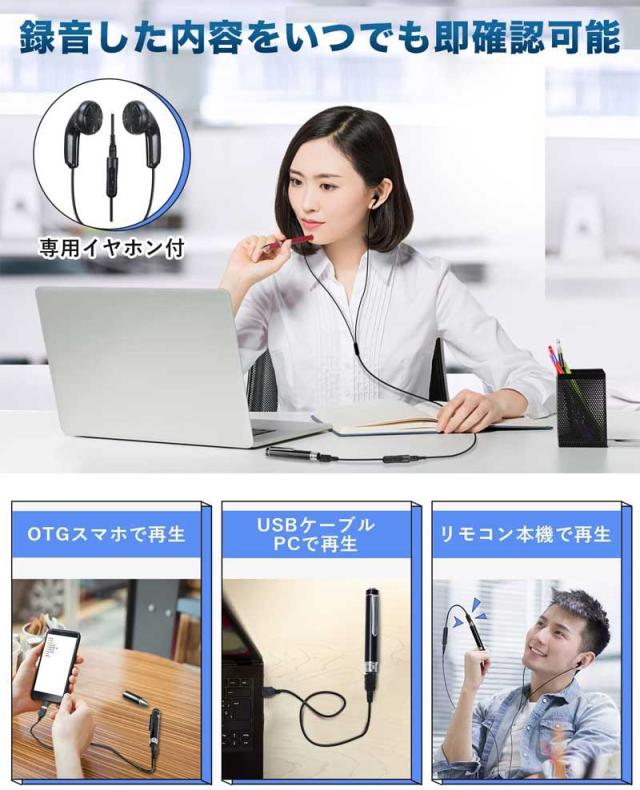 【限定クーポンで3880円】ボイスレコーダー ペン型 18時間連続録音 アドバンス 32GBメモリ ブラック